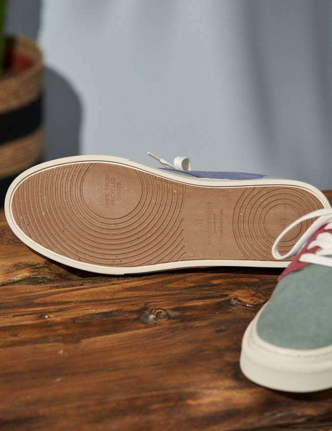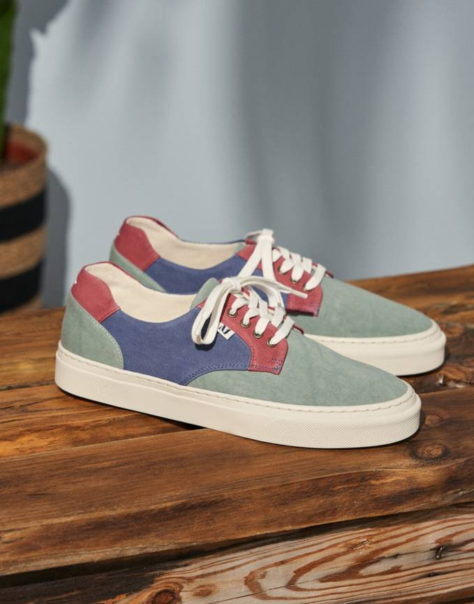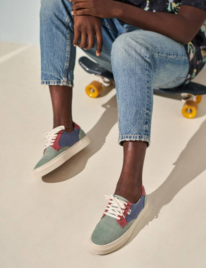 - Baskets basses en toile kaki bordeaux et bleu gris