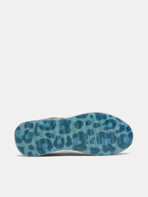 Baskets en combinaison de matières et de couleurs avec imprimé animal. Détail du logo sur le talon. Semelle imprimée. Fermeture par lacets.