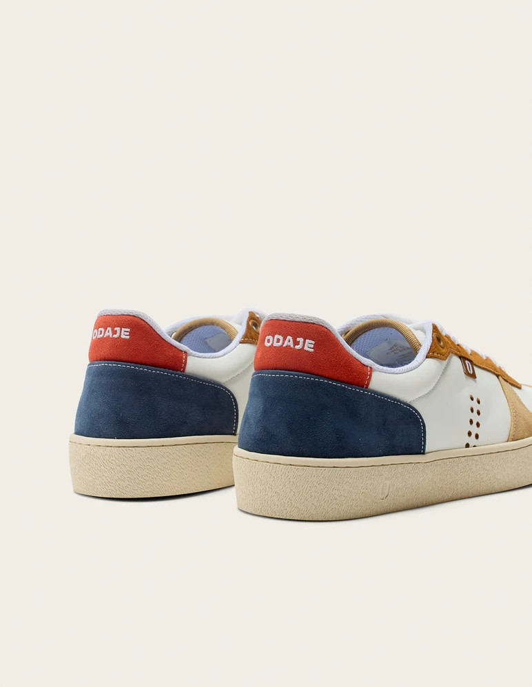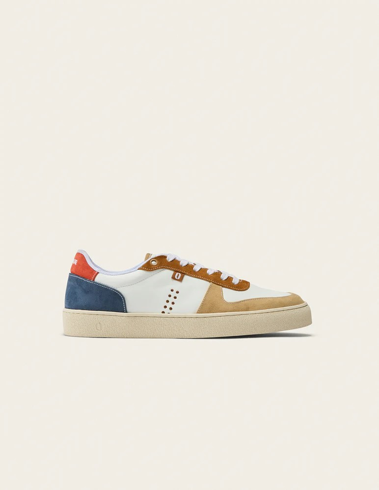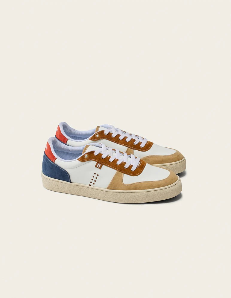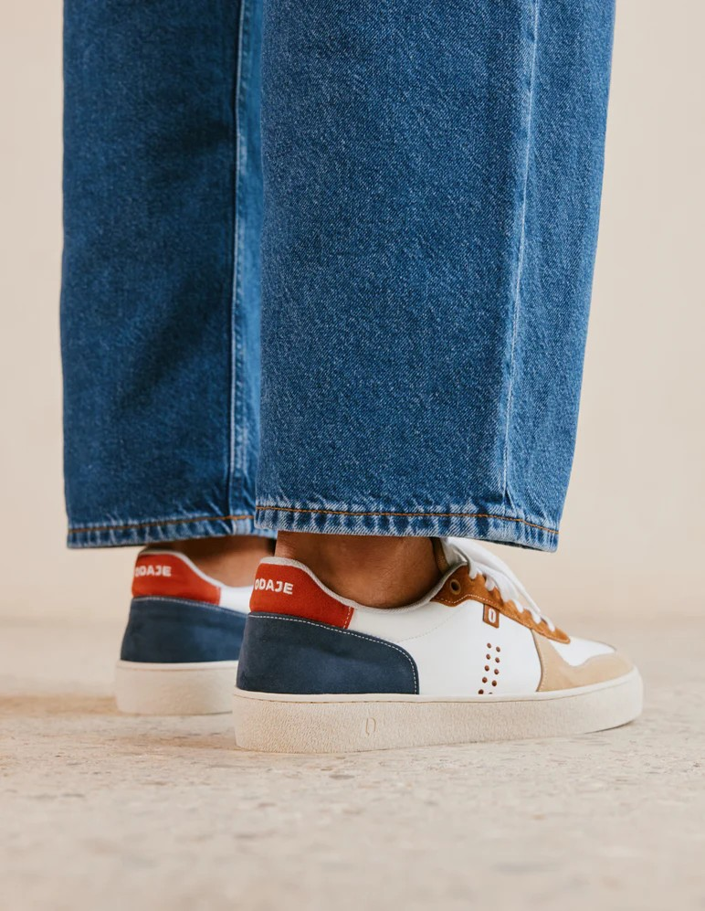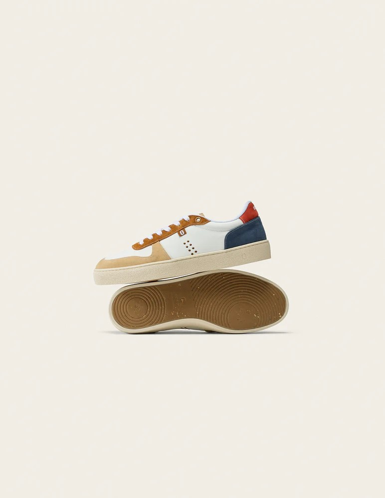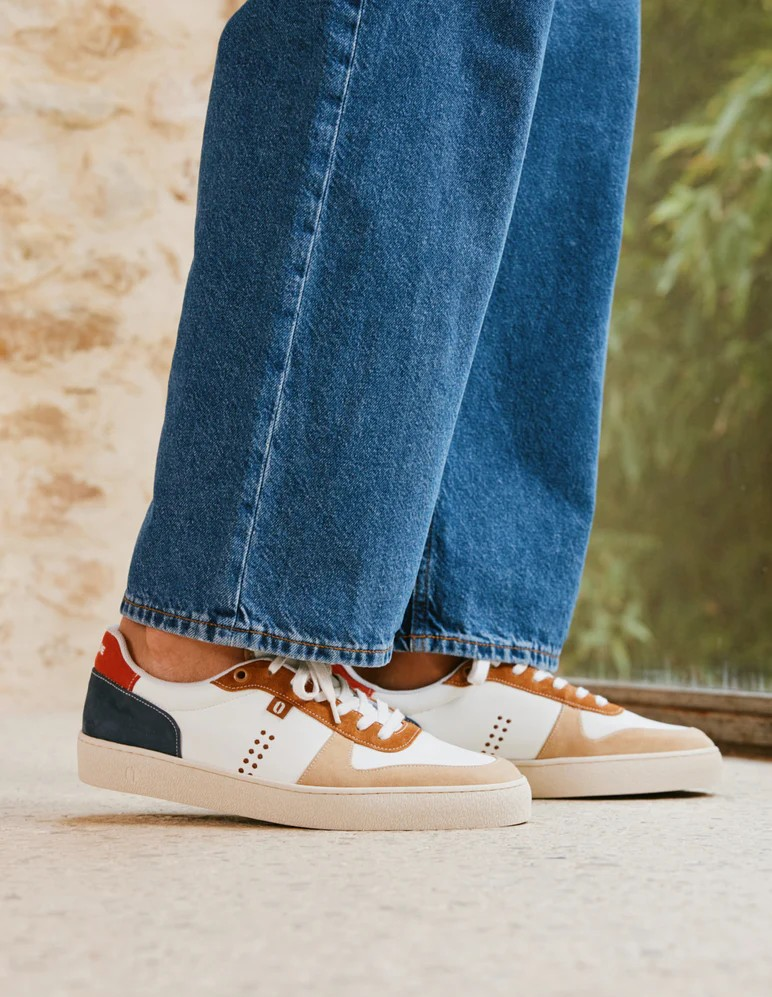 Découvrez notre basket basse Arthur en ambre et blanc, un intemporel du vestiaire masculin. Dessinée dans notre atelier parisien, elle est conçue à partir de suède vegan recyclés et suède sourcés en Espagne et Portugal. Arthur se distingue par notre semelle (re)colte, la première semelle fabriquée à partir de chaussures usagées collectées dans nos boutiques et de caoutchouc recyclé. Montée avec un cousu Strobel pour plus de souplesse. Coupure, piqûre et montage sont réalisés au Portugal.