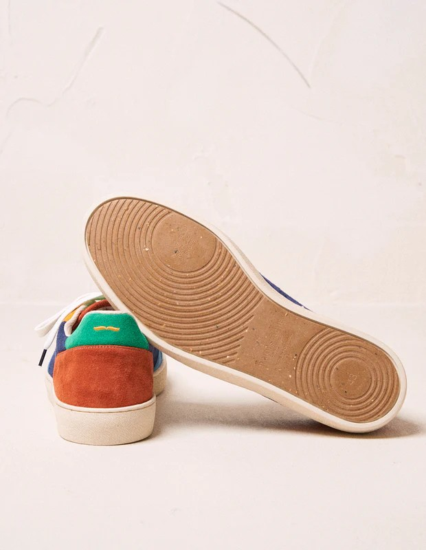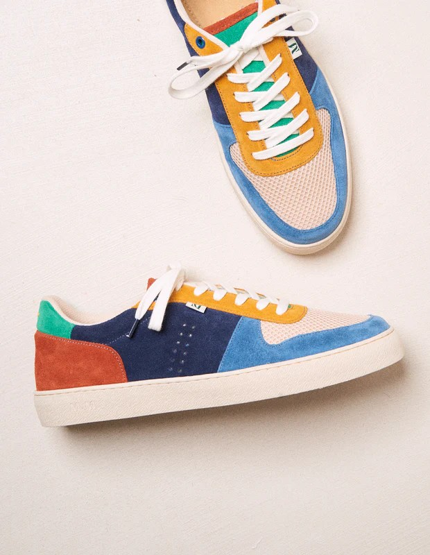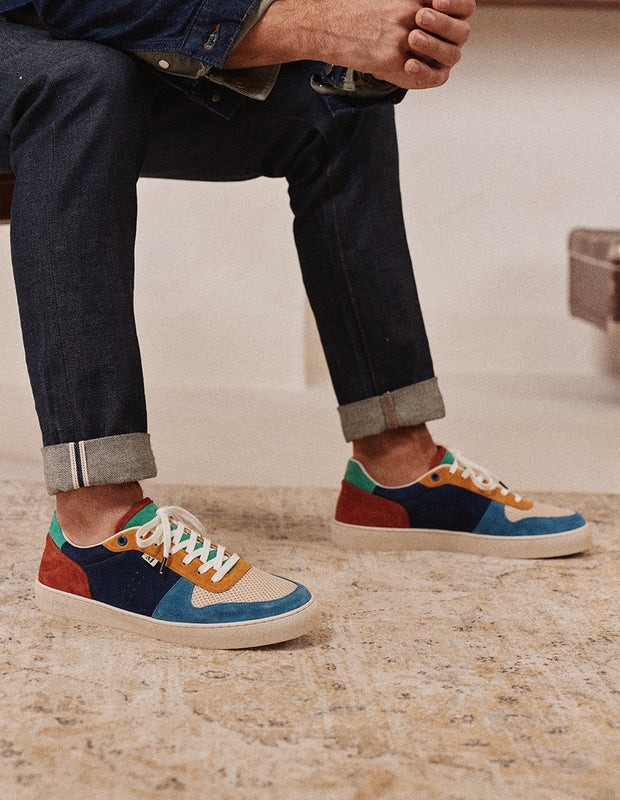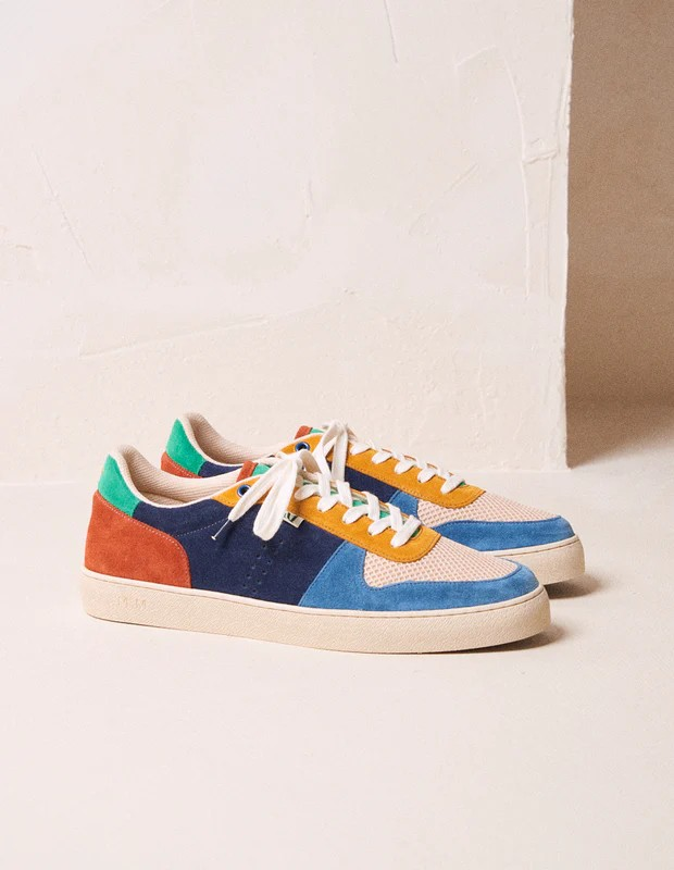 Arthur - Suède et mesh bleu gris, écru moutarde
