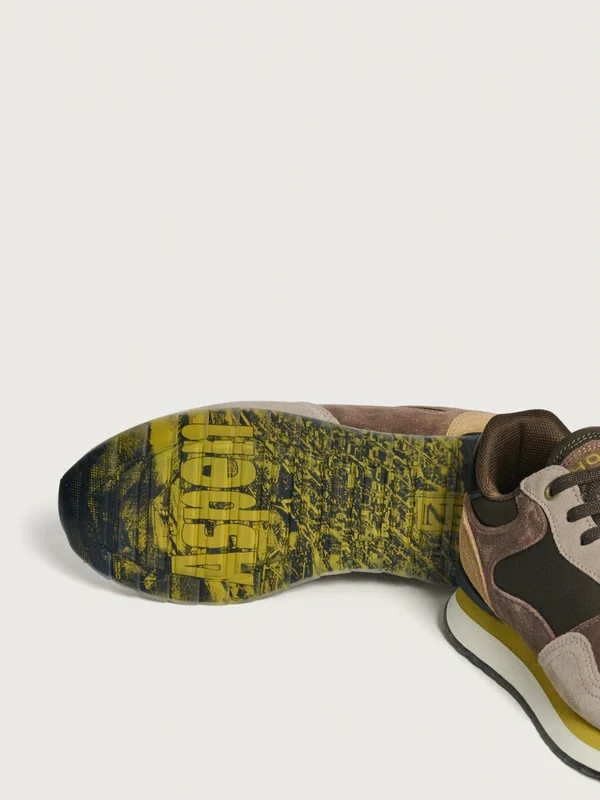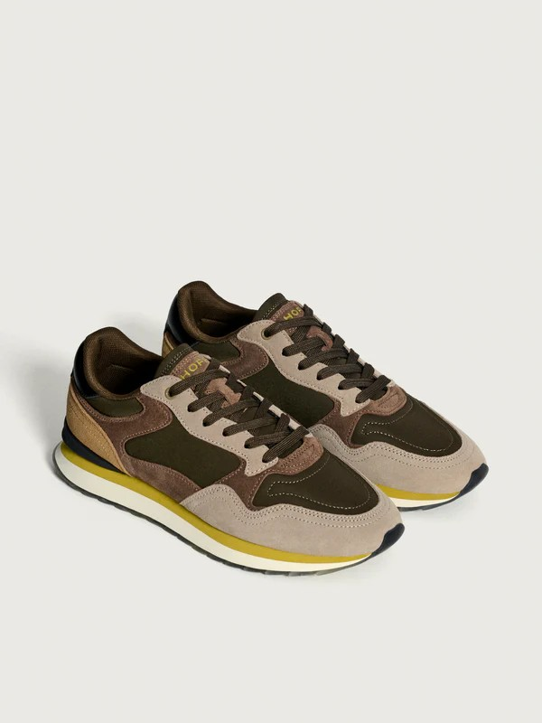 Sneaker de style rétro en combinaison de couleurs et de matières. Détail de logo à l’arrière. Semelle imprimée. Fermeture par lacets.