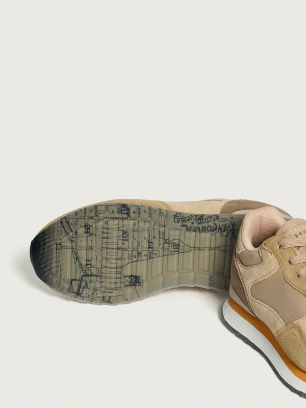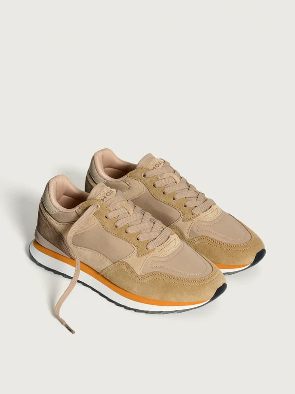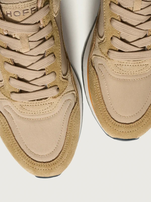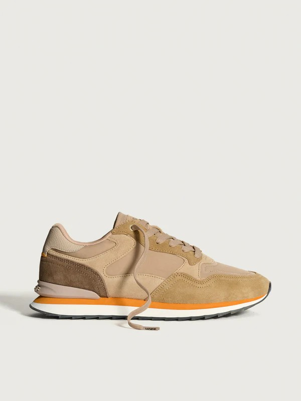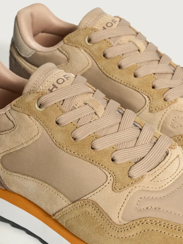 Sneaker au style rétro en combinaison de couleurs et de matériaux. Détail du logo à l’arrière. Semelle imprimée. Fermeture à lacets.