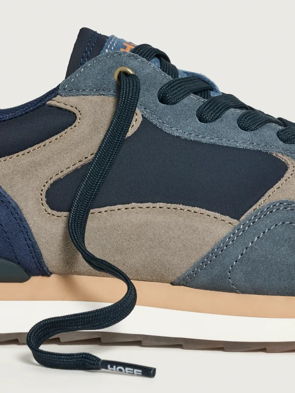 Sneaker de style rétro en combinaison de couleurs et de matières. Détail de logo à l’arrière. Semelle imprimée. Fermeture par lacets.