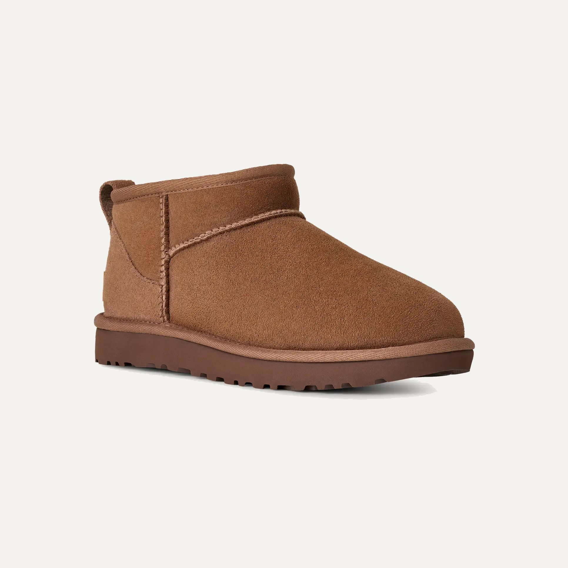 La Classic Ultra Mini est l’un de nos modèles Classic les plus prisés. Indéniablement tendance, elle présente une tige basse qui permet de l’enfiler et de la retirer rapidement. Pré-traité pour afficher une allure impeccable au fil du temps, ce modèle Classic incorpore tous vos éléments préférés présents sur la botte Classic : la peau de mouton iconique UGG et une semelle souple ultralégère. Ce produit a été fabriqué dans une usine qui soutient les femmes intervenant dans notre chaîne d’approvisionnement par le biais de HERproject. Cette initiative collaborative crée des partenariats avec des marques comme la nôtre pour valoriser et former les femmes sur le lieu de travail. La semelle extérieure de ce produit est soit en EVA issu de la canne à sucre, un composé responsable utilisant de la mousse de canne à sucre qui nous permet de réduire la dépendance aux combustibles fossiles en remplaçant l’éthylène à base de pétrole, soit en Treadlite by UGG™.