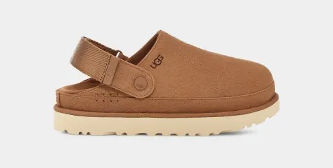 Confectionné en daim velouté, ce sabot à plateau polyvalent va avec tout. L’essence même d’un sabot, c’est son confort et en la matière, le sabot Goldenstar se montre à la hauteur ! Avec sa lanière pivotante, ce sabot se porte de deux façons, soit avec la lanière enserrant le talon, soit avec la lanière élégamment posée sur l’empeigne. Une semelle extérieure ultralégère assure amorti et maintien tout au long de la journée. La semelle extérieure de ce produit est soit une semelle extérieure SugarSole™, un composé responsable utilisant de la mousse de canne à sucre qui nous permet de réduire la dépendance aux combustibles fossiles en remplaçant l’éthylène à base de pétrole, soit une semelle extérieure Treadlite by UGG™.