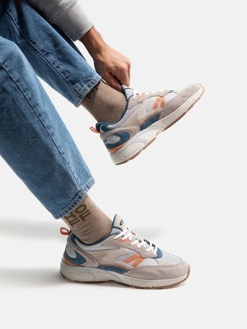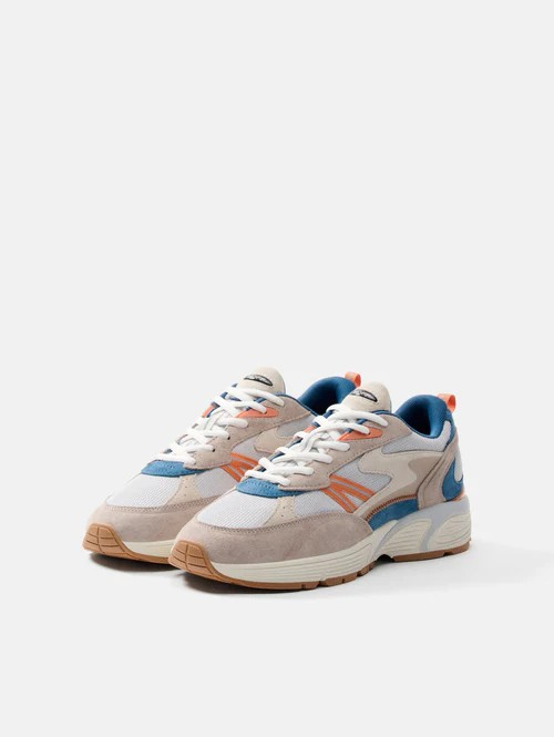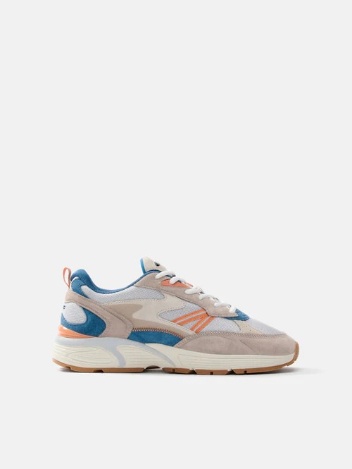 Inspirées d'INDIANA, ces baskets de style running de la collection STATE associent parfaitement des matières telles que le daim, le mesh et les pièces caoutchoutées. Son design exclusif se distingue par la combinaison équilibrée de tons bleus assortis au gris et contrastant avec l'orange, parfait pour des looks pleins de style et de personnalité. La semelle intérieure en mousse à mémoire de forme en fait des compagnons idéaux pour les longues journées ou pour le bureau. La semelle épaisse en caoutchouc présente des détails gris-bleu qui complètent la maille blanche sur les côtés et la tige, ainsi que des détails réfléchissants, un accent caoutchouté et un logo brodé distinctif. L'un des favoris du street style.