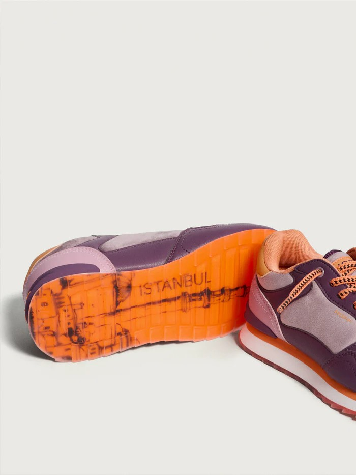 Les baskets Istanbul se distinguent par leur design unique et accrocheur, avec des tons violets et lilas contrastant avec des détails en daim et des accents orange sur le caoutchouc et les lacets. Ces baskets sont idéales pour se faire remarquer en toute occasion. La technologie de semelle intérieure Memory Foam® garantit un confort tout au long de la journée. Fabriquées avec des matériaux de haute qualité, y compris le synthétique et le nylon, elles offrent à la fois style et qualité. Associez-les à un jean et un t-shirt assorti pour un look urbain et moderne.