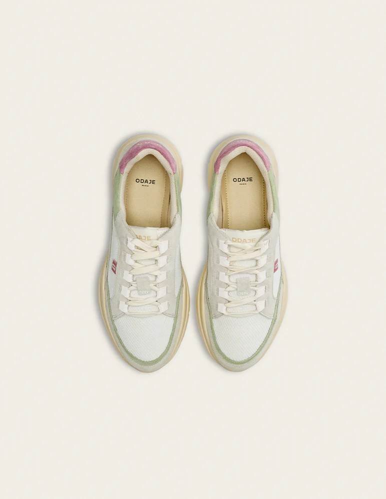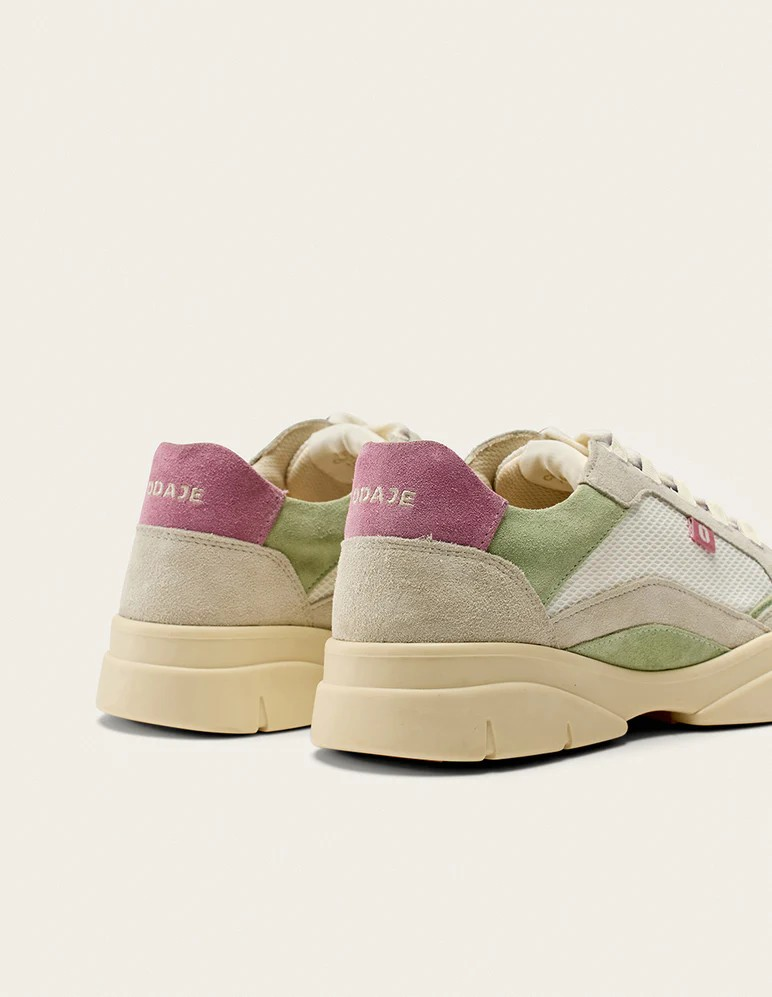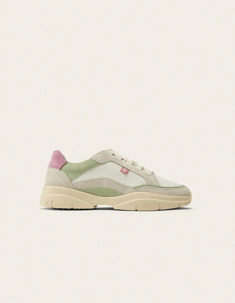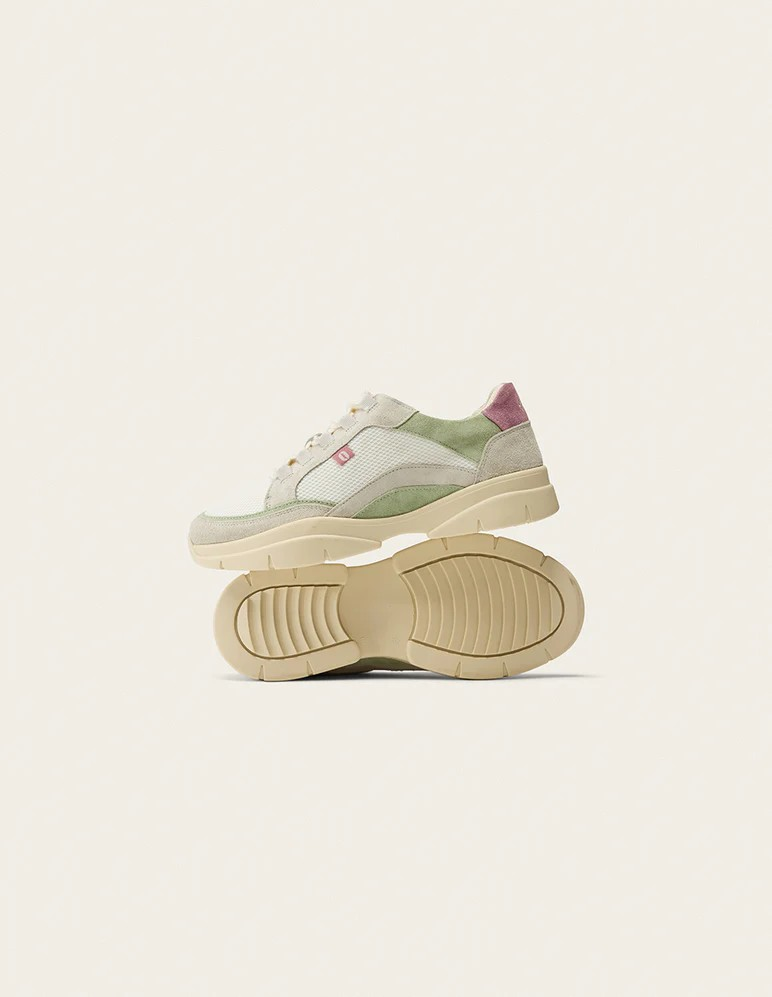 Découvrez notre iconique basket pour femme Laura, déclinée en ivoire et vert. Fabriquée au Portugal, elle associe suède et mesh pour une qualité supérieure. Doublée en mesh, Laura offre un confort optimal grâce au cousu Strobel, une technique de montage traditionnelle. Sa semelle intérieure en mesh et sa semelle extérieure en TR recyclé assurent durabilité et adhérence.