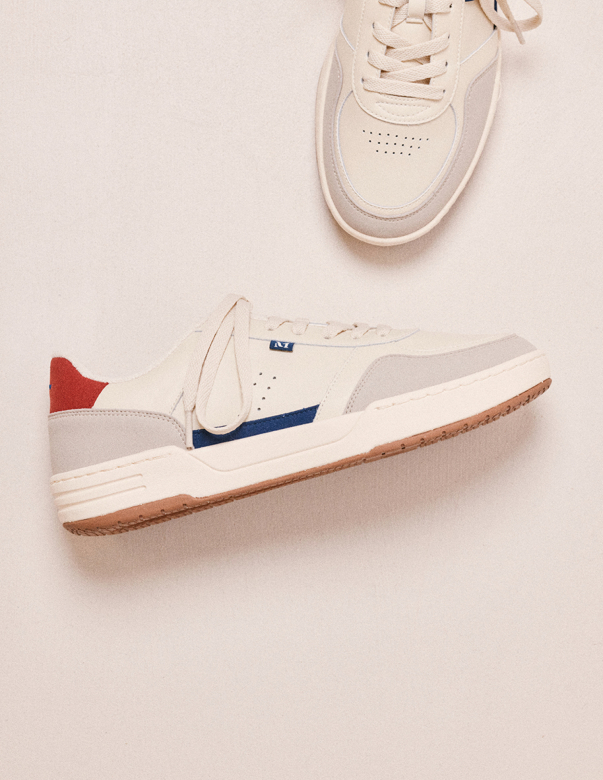 Mael - Cuir recyclé et suède vegan ecru marine rouge
