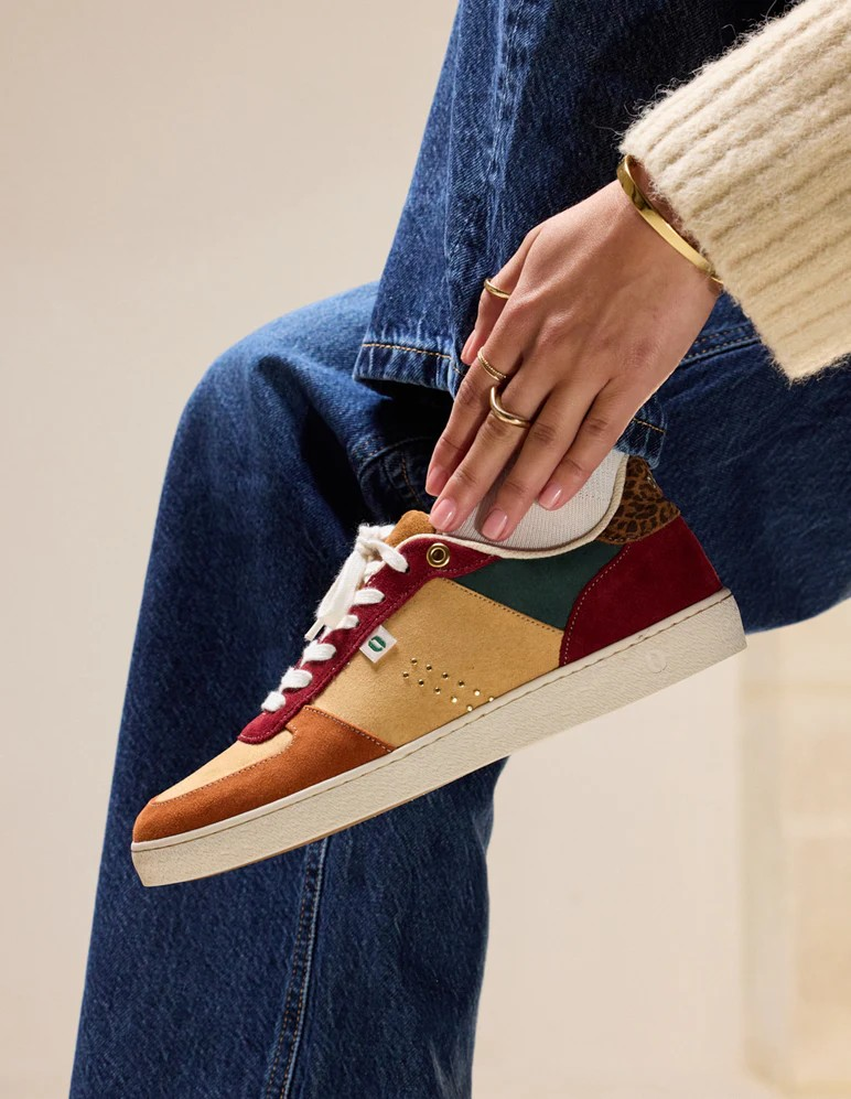 Notre basket basse Marie se décline en brique, beige et bordeaux, un intemporelle au vestiaire féminin. Elle est éco-conçue pour un minimum d’impact carbone. Fabriquée avec du suède recyclé et du suède sourcés en Espagne, Italie et Portugal, sa doublure et sa semelle intérieure en mesh assurent un confort optimal. Marie est confectionnée avec notre semelle (re)colte : la première semelle fabriquée à partir du recyclage de vos chaussures usagées récoltées dans nos boutiques et de caoutchouc recyclé. Elle allie souplesse et confort grâce à sa construction Strobel. Coupure, Piqure et Montage au Portugal.