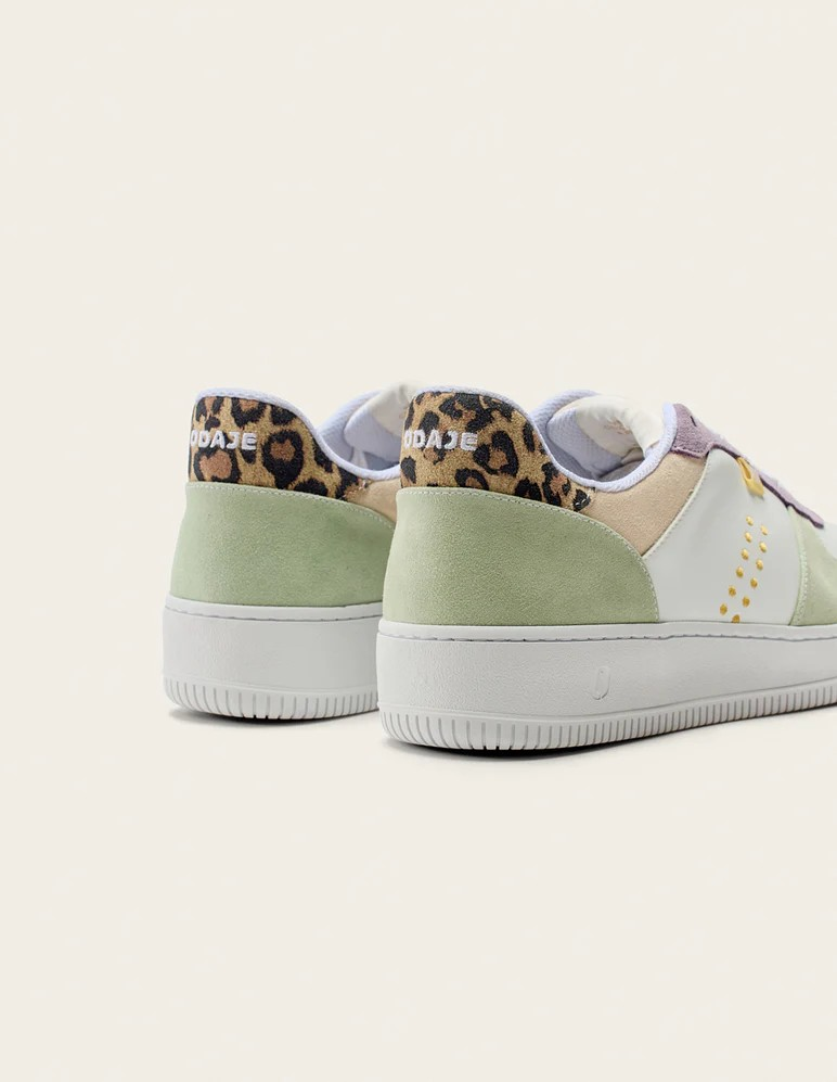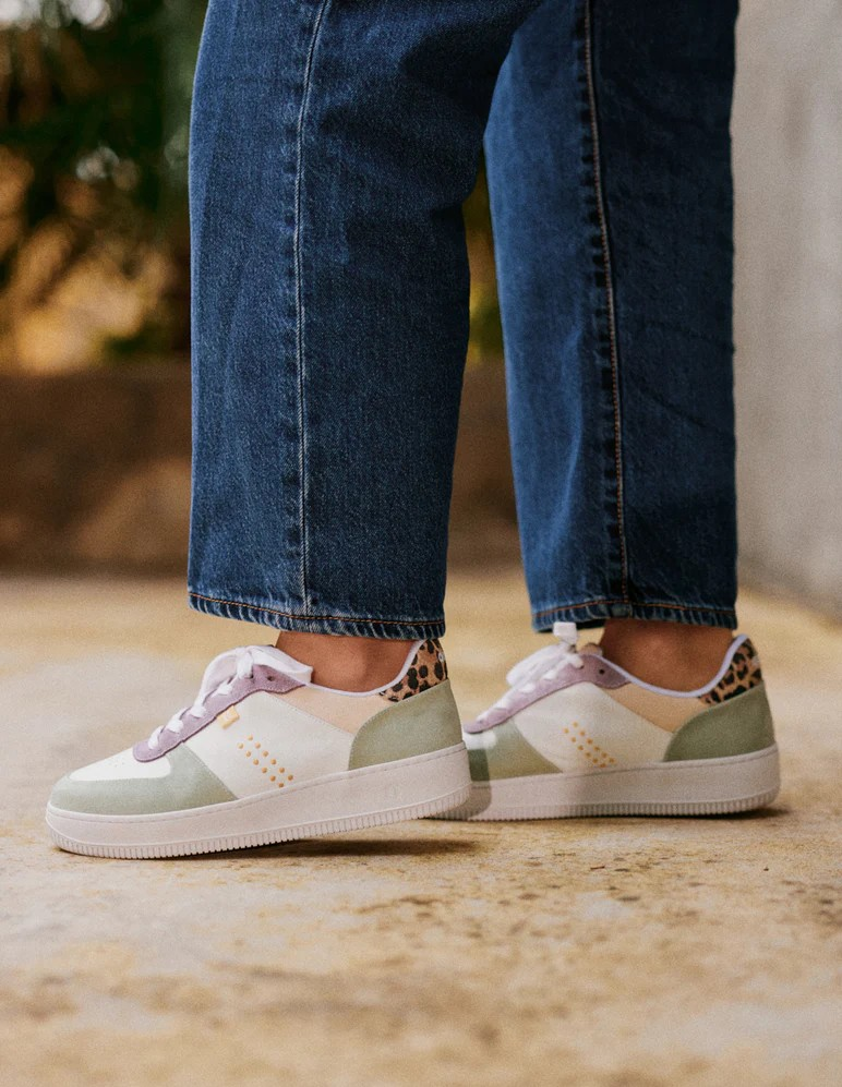 Découvrez Maxence F, basket basse pour femme en vert, blanc et lilas. Dessinée dans notre atelier parisien, elle est éco-designée pour un minimum d’impact carbone. Confectionnée à partir de suède vegan, de suède et de cuir recyclé sourcés en Espagne et au Portugal, elle est doublée en mesh pour assurer confort et souplesse et dotée de notre semelle (re)colte, fabriquée à partir du recyclage de vos chaussures usagées. Coupure, Piqure et Montage au Portugal.