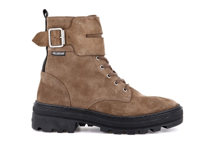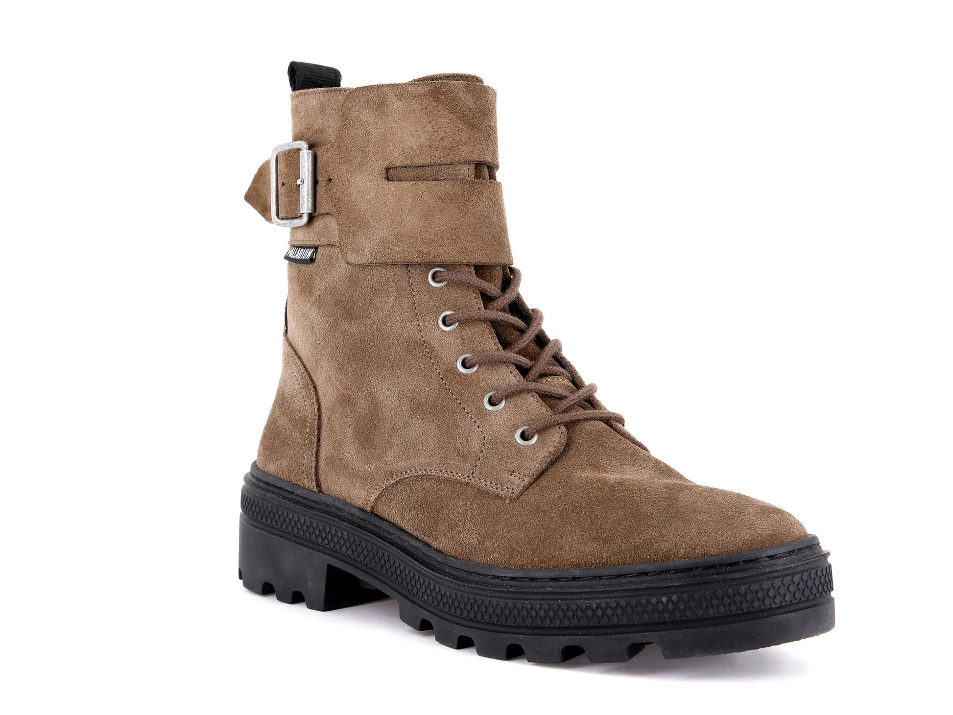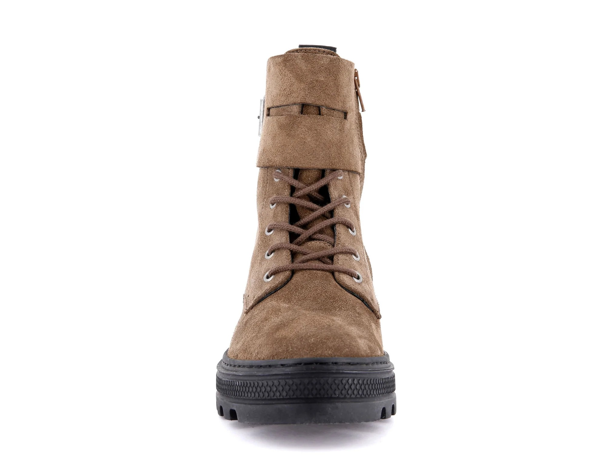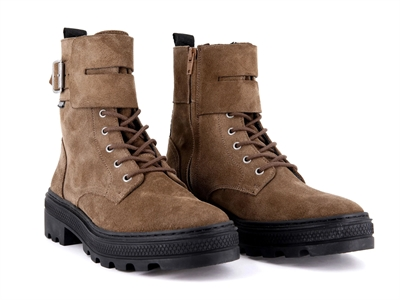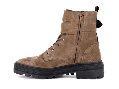 La ligne CULT arbore fièrement les codes et l'ADN des chaussures vintage de l'armée française faites par Palladium : authenticité, confort, durabilité mais avec un twist de modernité et de féminité. La semelle compensée en caoutchouc à crampons bénéficie d'une couture latérale qui garantit une durée de plus longue et une signature unique. Fabriquées au Portugal dans des ateliers de chausseurs, qui cultivent le savoir-faire et la tradition, les matières sont choisies avec attention. Toutes les chaussures PALLADIUM MANUFACTURE se caractérisent par le souci d'élancer la silhouette tout en garantissant confort et chaussant parfait. La ligne CULT est donc une arme redoutable pour que les femmes puissent affronter le quotidien avec attitude. En cuir suède gris, ce modèle ranger à lacets avec renfort apporte douceur et féminité à votre dressing d'hiver.