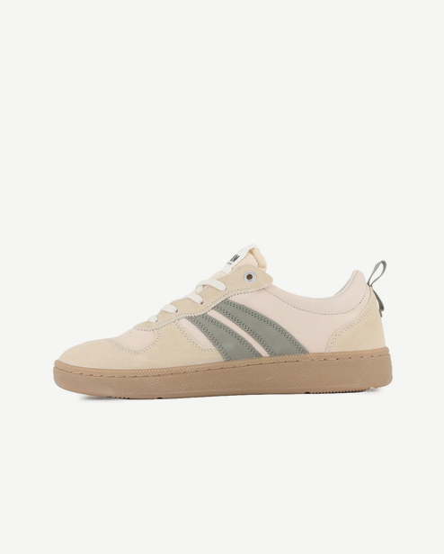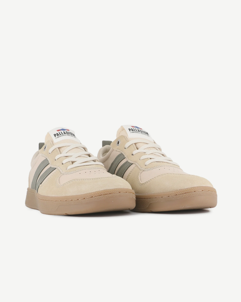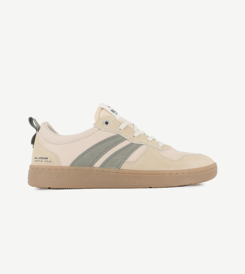 Cette basket en cuir et daim s’inspire des modèles Palladium phares des années 70-80, avec ses flammes emblématiques et ses coloris vintage. Sa semelle gomme et son intérieur en PU moulé assurent confort et style au quotidien.
