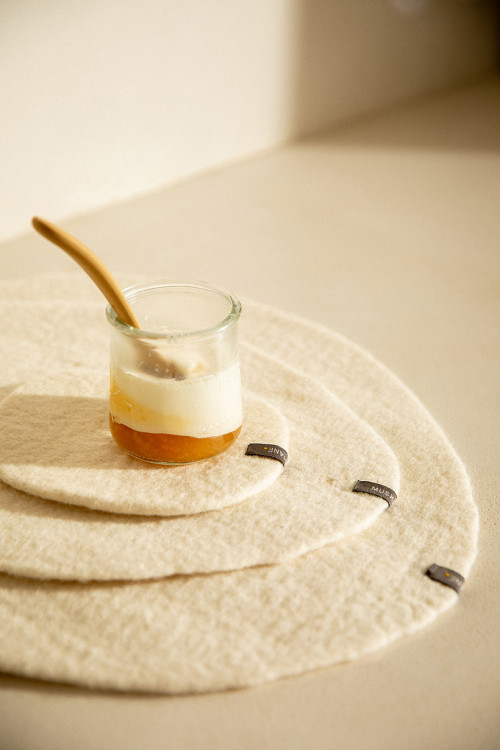 Avec sa forme irrégulière et organique, la PASTILLE GALET UNIE en laine feutrée s’utilise de multiples façons : dessous de verre, set de table, pour poser un objet ou un vase, accrocher des photos, ou encore, comme dessous de plat grâce aux propriétés isolantes du feutre. Façonnée artisanalement par nos artisans népalais, la pastille galet et ses différentes déclinaisons de tailles, apportera une touche design à votre intérieur.