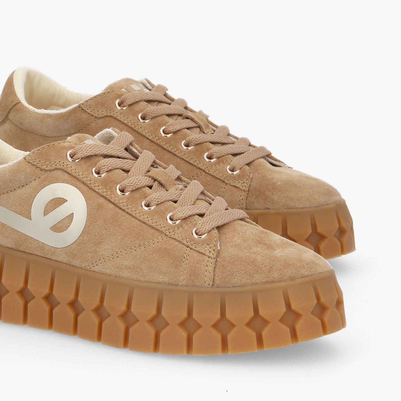 NO NAME réinvente la PLAY SNEAKER avec une touche de raffinement supplémentaire. Cette sneaker associe un dessus en cuir velours noisette à une semelle crantée couleur miel, créant ainsi une harmonie subtile. Les logos dorés sur les côtés et au talon ajoutent une touche de glow à cette tige élégante. Avec sa silhouette atypique et son allure urbaine, la PLAY SNEAKER est la basket parfaite pour pimper les looks citadins.