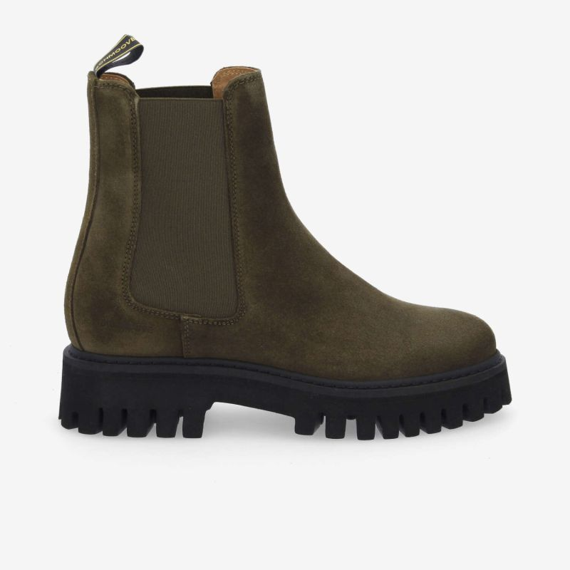Dernière création Schmoove, le Rotterdam Chelsea s'impose comme le nouvel essentiel à associer avec l’ensemble de la garde-robe féminine. Ce boots en cuir velours kaki marie avec style une silhouette intemporelle à une audacieuse semelle crantée. Dotée d’élastiques latéraux ton sur ton et d’une tirette logotypée, elle s’enfile facilement. La semelle intérieure en cuir, légèrement compensée, offre un confort optimal tout en rehaussant discrètement la silhouette. Cette bottine kaki pour femme combine harmonieusement une élégance intemporelle et une esthétique résolument moderne et citadine.