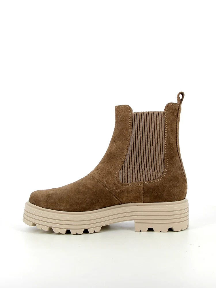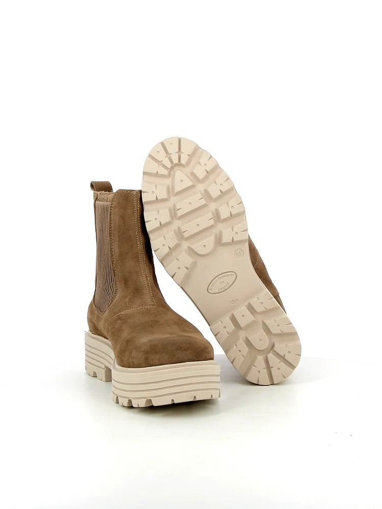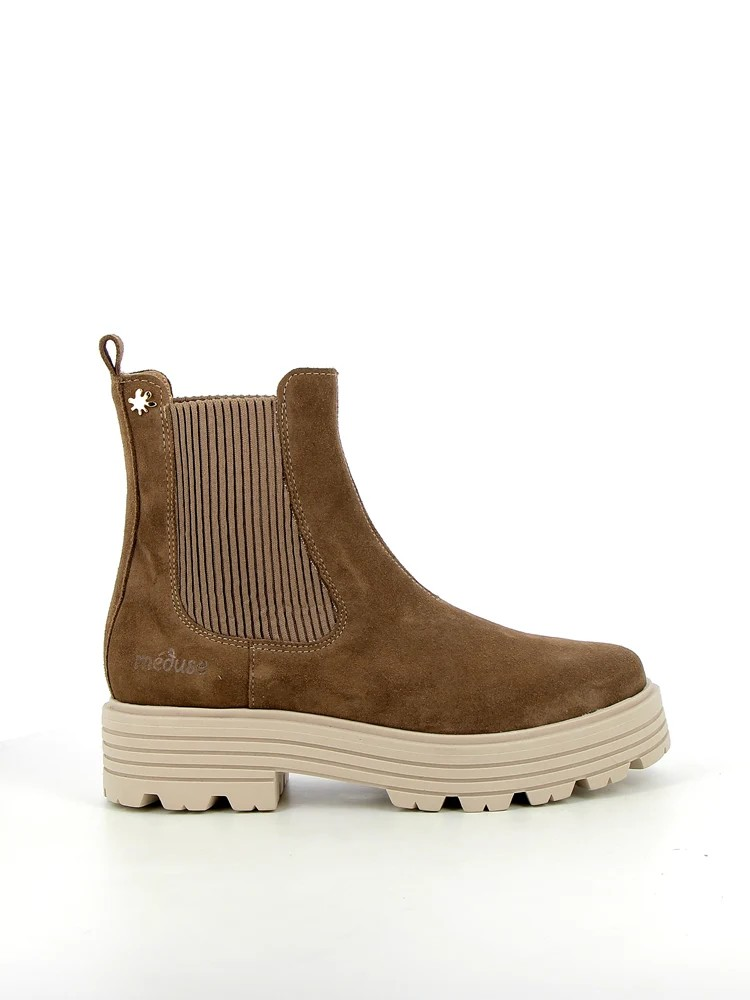 Découvrez la première Chelsea boot en cuir velours de chez Méduse. Facile à enfiler grâce aux élastiques sur la tige, elle vous procurera tout le confort nécessaire pour vous accompagner au quotidien. Cette boots femme, entièrement doublée cuir, avec semelle intérieure cuir, repose sur une semelle épaisse et crantée pour un style très actuel. Ce modèle combine confort et sophistication, parfait pour toutes les occasions.