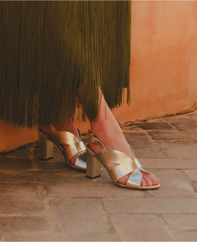 Sandales n°55 - Cuir craquelé - Or Blanc