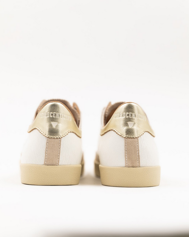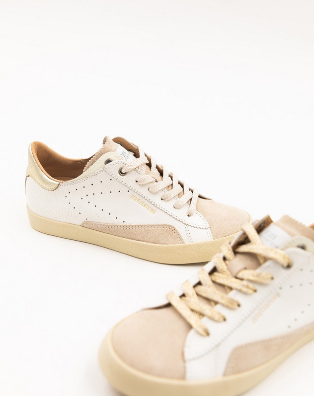 Blanc, beige et or, cette palette de couleur pleine de douceur est incontournable. D’apparence simple, mais aux détails subtils : une touche de cuir craquelé pour une allure moderne et des lacets dorés pour le côté chic font de cette paire la chaussure facile à combiner.