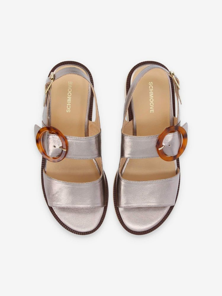 La Sandale Sigui se pare d'une élégance scintillante pour illuminer le vestiaire féminin. Conçue en cuir métallisé rose gold, elle enveloppe délicatement le pied de deux larges brides, dont l'une est ajustable grâce à une imposante boucle façon écaille. Egalement ajustable au talon à l'aide d'une boucle en métal doré, elle s’adapte à chaque morphologie. Posée sur une épaisse semelle beige, avec une trépointe en cuir et une couche d’usure miel, cette sandale Schmoove incarne la parfaite alliance entre glamour et confort. Une alliée de choix pour déambuler avec élégance tout l’été.