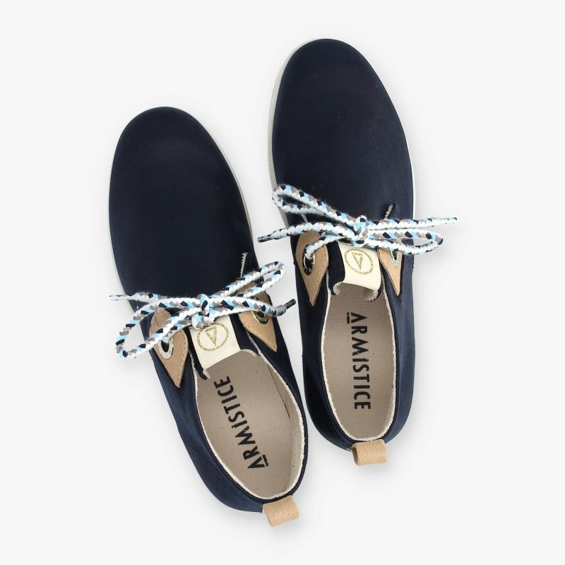 Mettez de la couleur à vos pieds avec la Stone Mid Cut ! Cette incontournable chaussure montante d'Armistice parée d'une toile bleu marine, agrémentée de patchs dorés sous les oeillets et sur la tirette. Le confort n'est pas en marge du style, avec une semelle en caoutchouc et une doublure en éponge. La tennis se ferme par des lacets en corde multicolores.