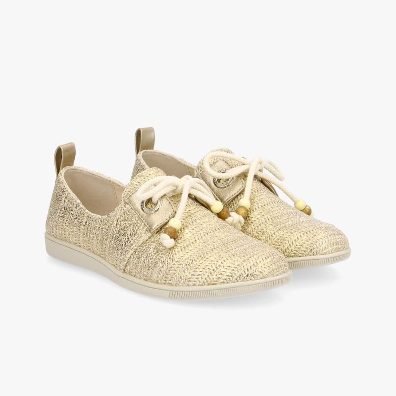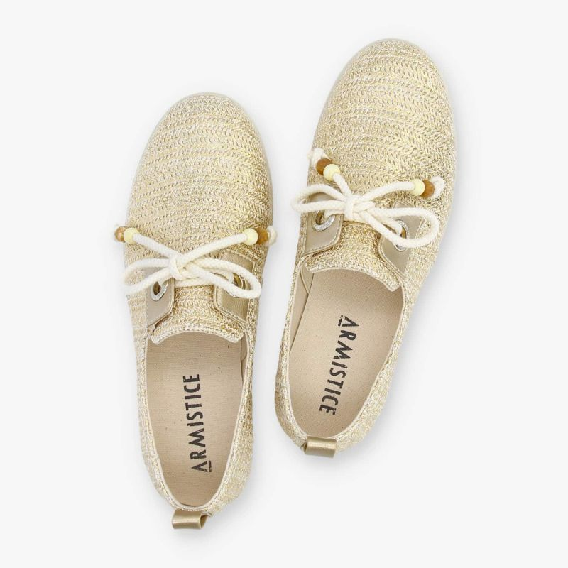 La STONE ONE va faire scintiller tous les looks de l’été dans cette version raphia tressé doré avec patchs ton sur ton. Une petite tennis pétillante au look ultra glamour qui reste fidèle aux codes Armistice avec son lacet corde finitions perles qui coulisse dans des oeillets XL. Une chaussure étincelante qui apportera une touche glamour et lumineuse dans le vestiaire. Elle offre également un maximum de confort grâce à sa semelle fine en caoutchouc.