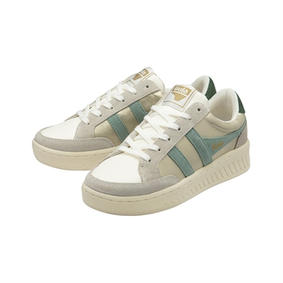 La Superslam Blaze de Gola incarne l'élégance intemporelle des baskets de cour. Dotée d'une semelle extérieure blanc cassé emblématique qui a fait le succès de la marque, cette nouvelle itération allie une tige or discret à des touches de couleur signature et des détails métallisés pour un rendu sophistiqué. Les accents vert sapin et vert brume complètent cette composition harmonieuse, créant une silhouette moderne tout en respectant l'héritage Gola. Un choix affirmé pour ceux qui recherchent une basket de caractère, alliant tradition et style contemporain.