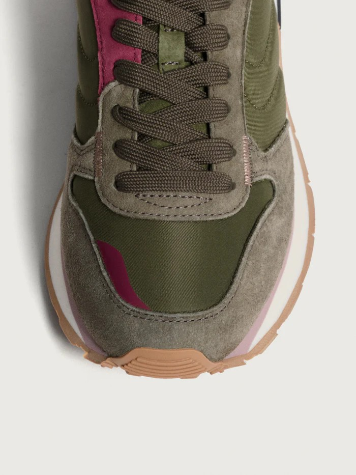 Élégance et fonctionnalité dans un design inspiré par la nature et la résistance de l'athlétisme. Les matériaux sélectionnés, incluant du cuir de qualité et un tissu résistant, se combinent dans des tons vert olive et bordeaux, offrant une présence sophistiquée. La semelle souple assure le confort, tandis que la semelle intérieure en Memory-Foam® s'adapte au contour du pied. Elles sont le choix idéal pour ajouter une touche distinctive à votre tenue, qu'il s'agisse d'un look de travail décontracté ou d'un style plus relax pour le week-end.