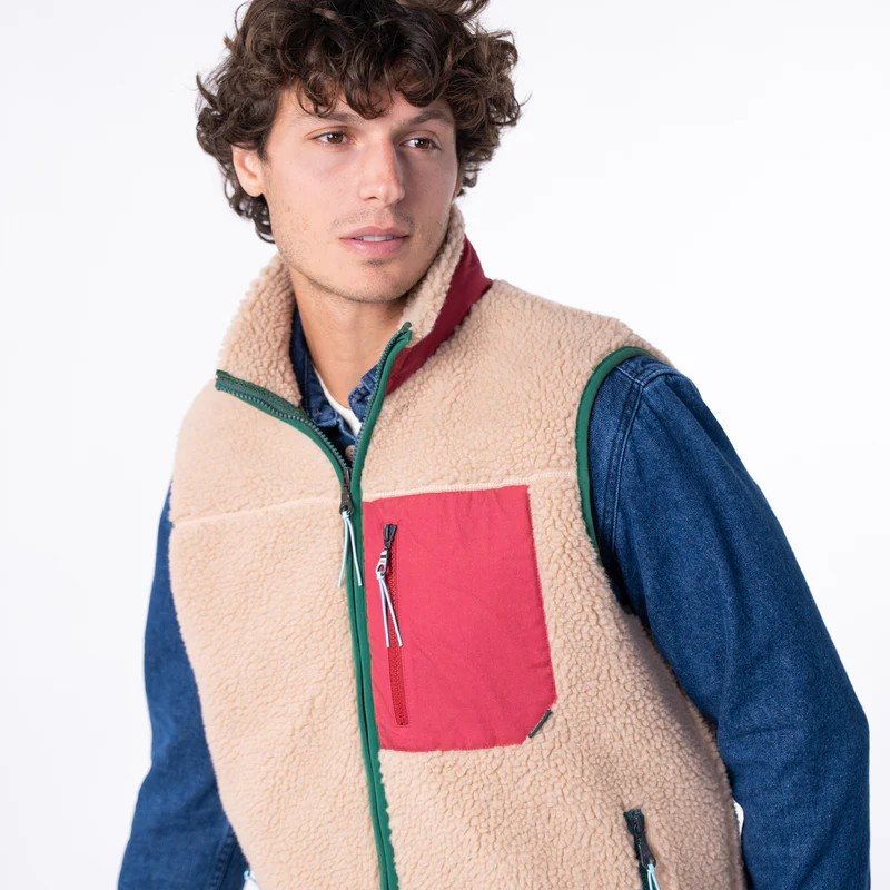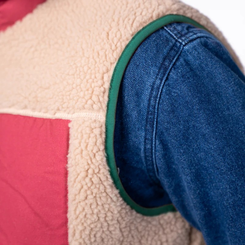 Veste sherpa zippée sans manches - Naturel et bordeaux